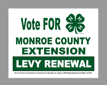 Read MoreMonroe County Extension Levy Renewal Committee is promoting the passage of a 0.7 mill renewal levy on Nov. 5, 2019 to continue funding the Monroe County Extension office. This levy was first passed in 2000 and has been renewed in 2004, 2009 and 2014. Funds provided by the levy keep programs in 4-H, Agriculture and Natural Resources, Family and Consumer Sciences, and Community Development in Monroe County. Remember to vote on Nov. 5.
