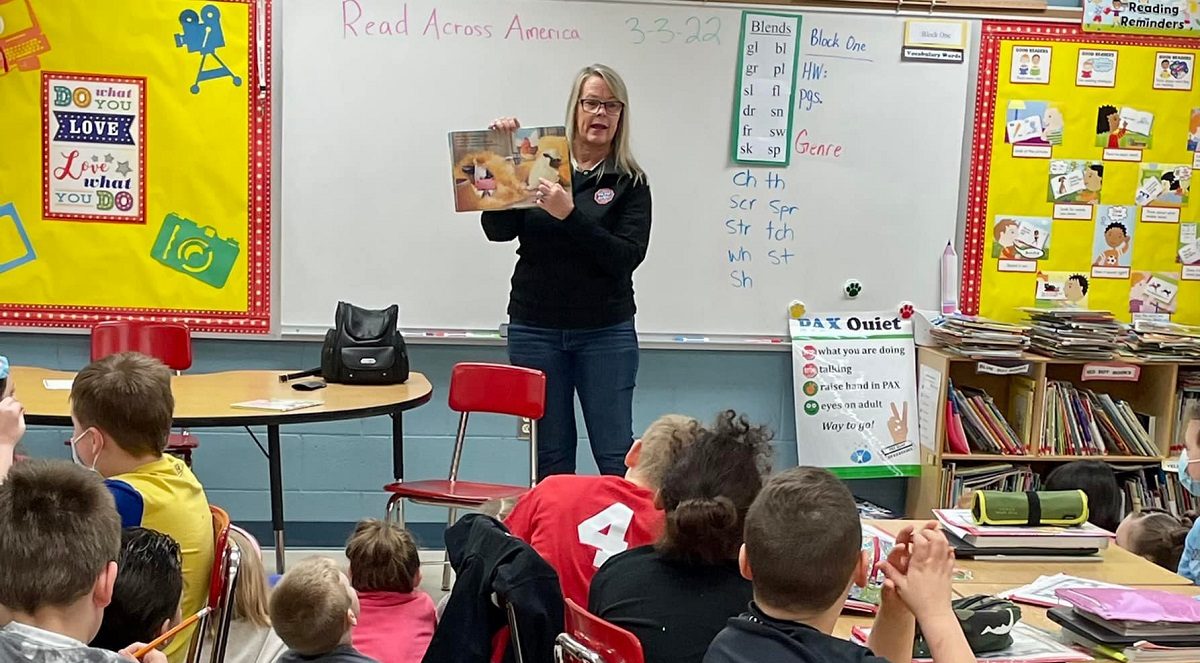 Jackson-Vinton Farm Bureau Senior Organization Director Kim Harless reads to Northview Elementary Students during Read Across America Week.