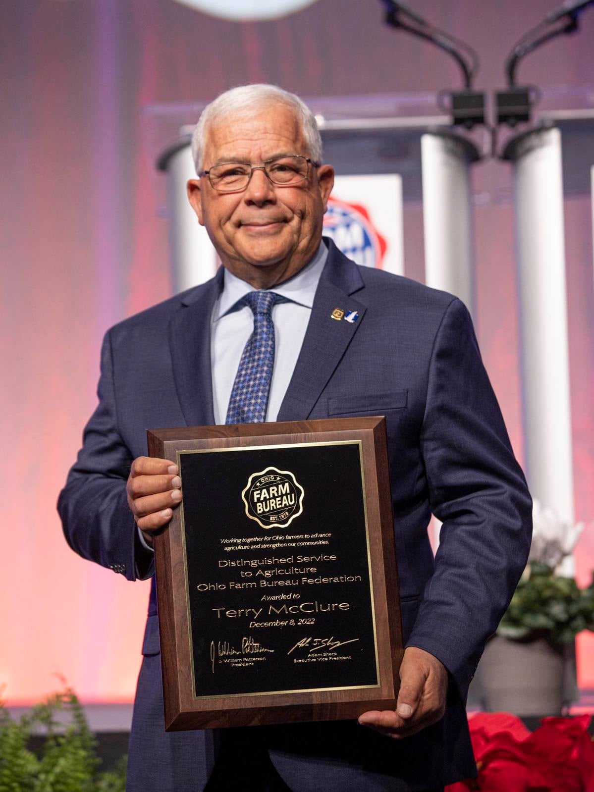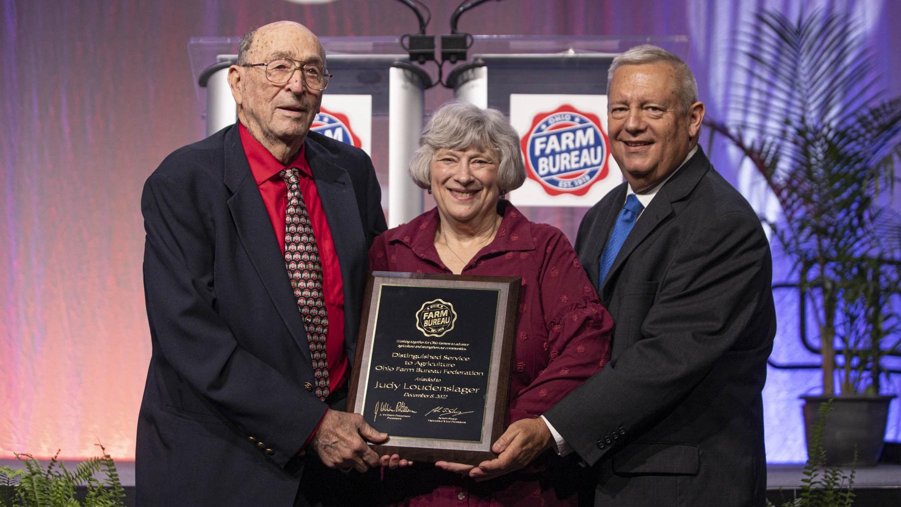 Both honorees were recognized for lifetime achievements that benefited Ohio’s farming community. The awards were presented Dec. 8 in Columbus at the 104th annual meeting of Ohio Farm Bureau.