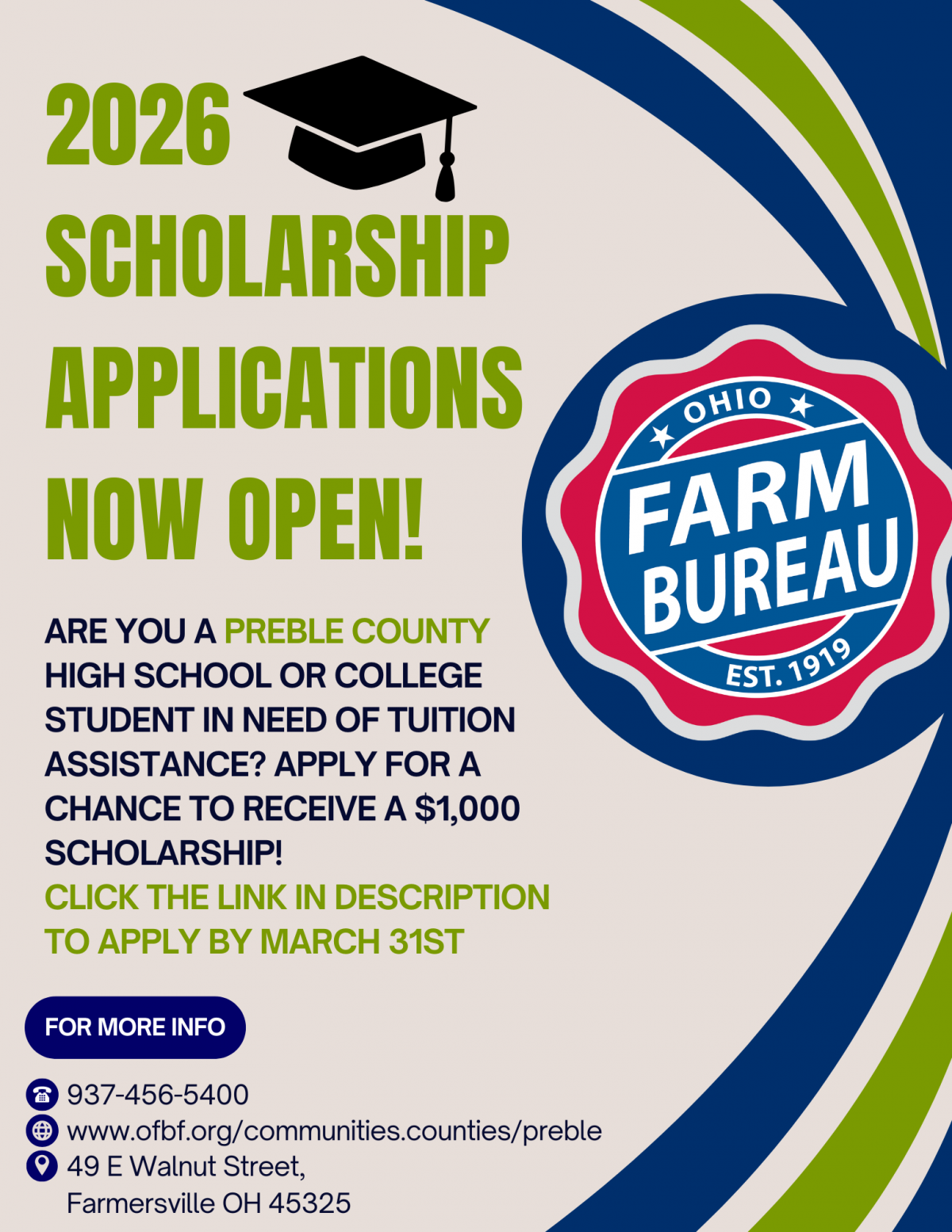 Read MoreThe Preble County Farm Bureau is pleased to announce that our 2026 scholarship application portal is now live!