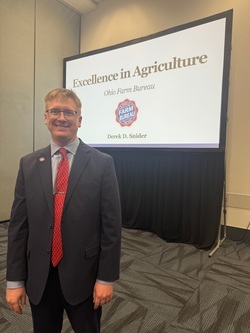 Derek Snider from Hardin County shared his extensive work within the agriculture community in the American Farm Bureau Excellence in Agriculture Award, a competition that focuses on individuals or couples who do not have a majority of their gross income subject to normal production risk.