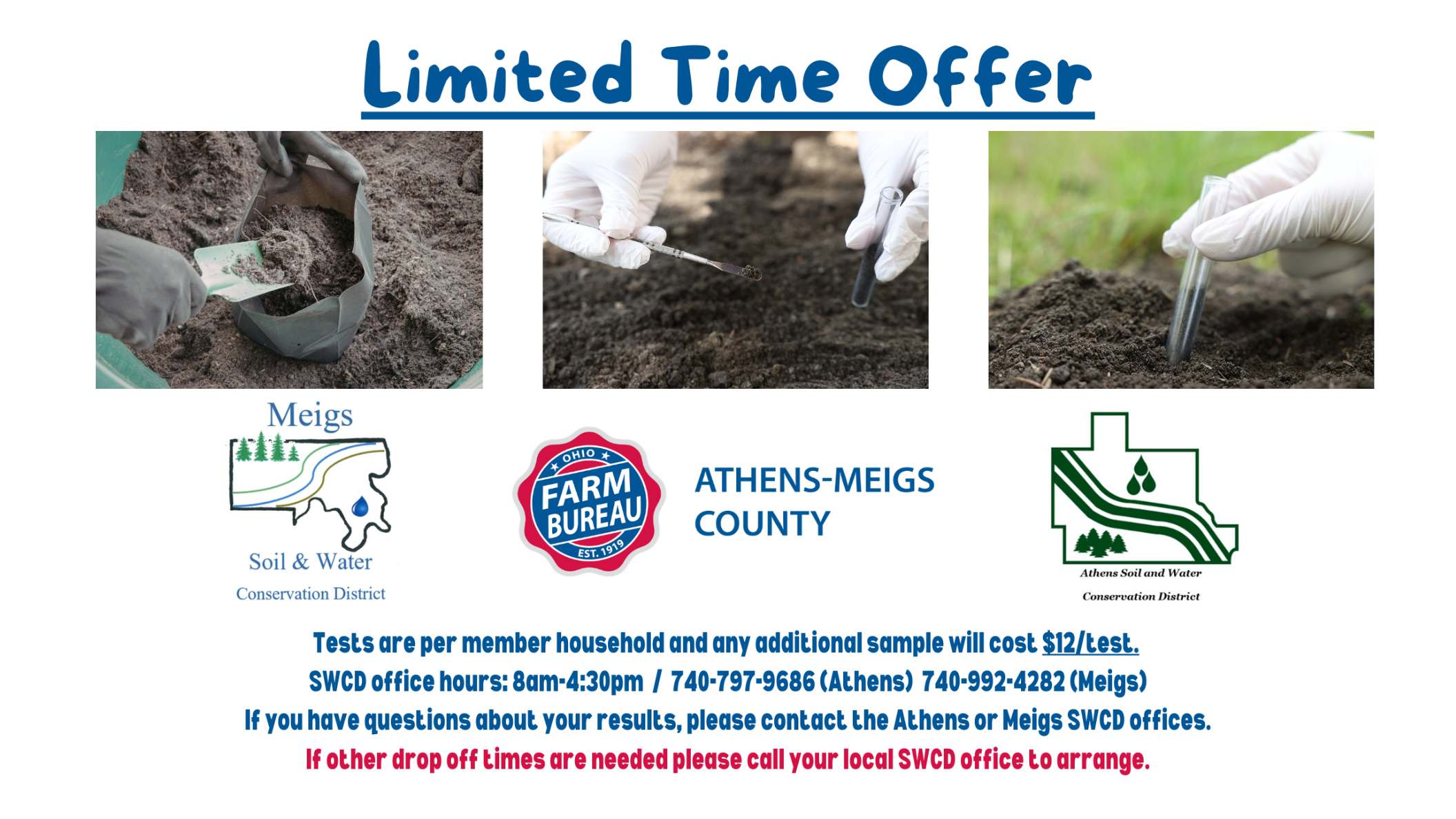 Athens-Meigs Farm Bureau, Athens SWCD and the Meigs SWCD have partnered up to offer Farm Bureau members two FREE soil samples per member household.
