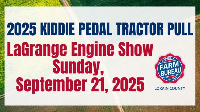On Sunday, September 21, 2025 at the LaGrange Engine Show at the Lorain County Fairgrounds, Lorain County Farm Bureau is sponsoring a Kiddie Pedal Tractor Pull for ages 4 -10.