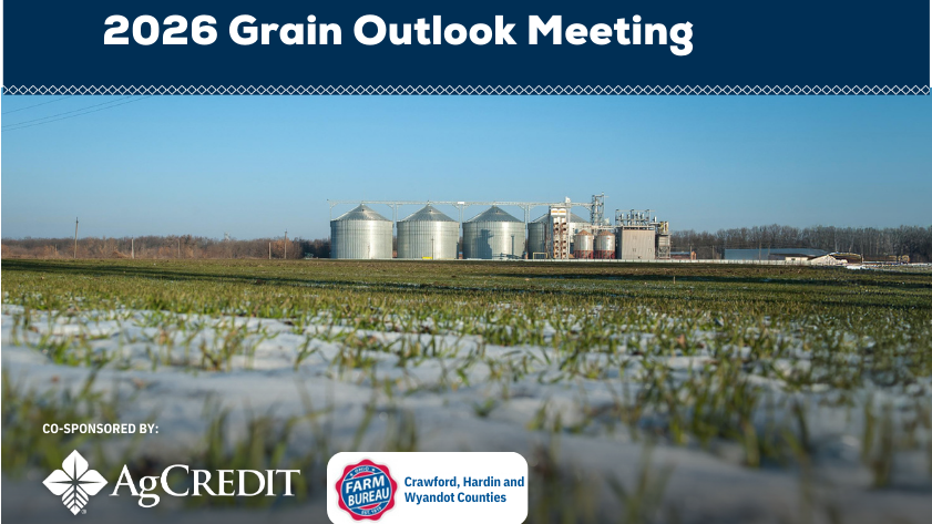 AgCredit and the Crawford, Hardin, and Wyandot County Farm Bureaus invite you to join us for a 2026 Grain Outlook Marketing event. When: Tuesday, March 24, 2026