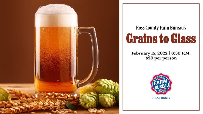 Ross County Farm Bureau members are invited to join us for a night of food, drinks, fellowship and information. Ross County Farm Bureau’s Grains to Glass program focuses on the production of locally brewed beer from start to finish.