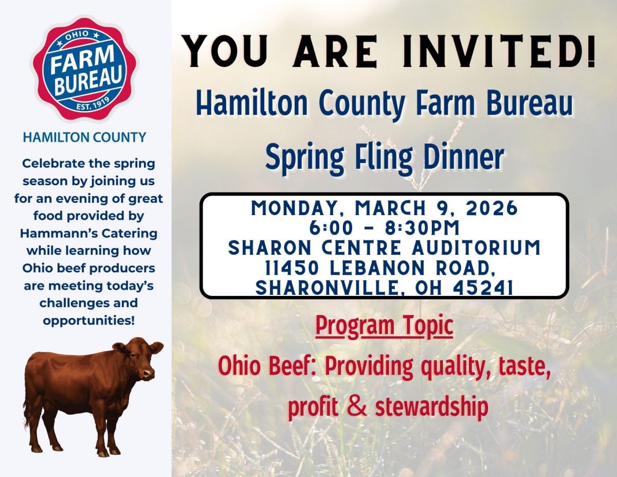 Celebrate the spring season by joining us from 6-8:30 p.m. March 9 at The Sharon Centre Auditorium, 11450 Lebanon Road, Sharonville, Ohio, for an evening of great food provided by Hammann’s Catering while learning how Ohio beef producers are meeting today’s challenges and opportunities!