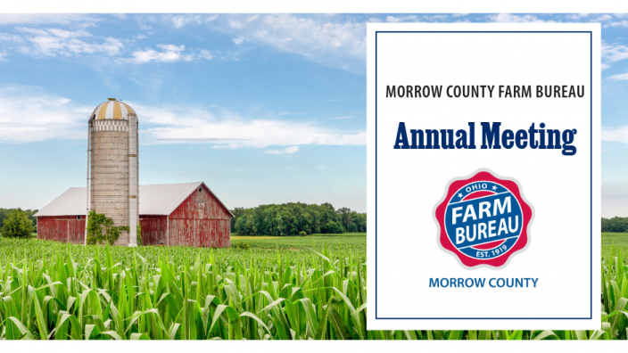 Please join Morrow County Farm Bureau for the Annual Meeting on Thursday, July 17 at Gilead Friends Church, 4863 US Hwy 42, Mt. Gilead. Doors open at 5:30 p.m. and dinner will be served at 6 p.m.