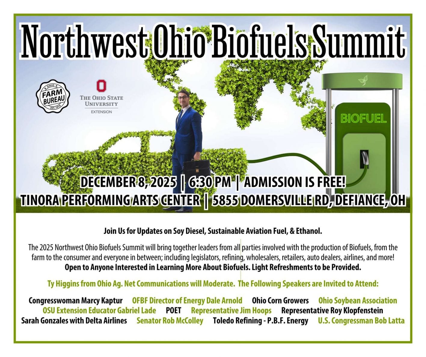 The 2025 Northwest Ohio Biofuels Summit will bring together leaders from all parties involved with the production of biofuels , from the farm to the consumer and everyone in between — including legislators, refining, wholesalers, retailers, auto dealers, airlines and more.