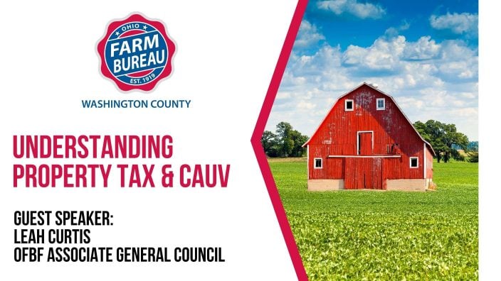 Join us and our guest speaker, Leah Curtis, Ohio Farm Bureau associate general counsel, to discuss understanding property taxes and CAUV.