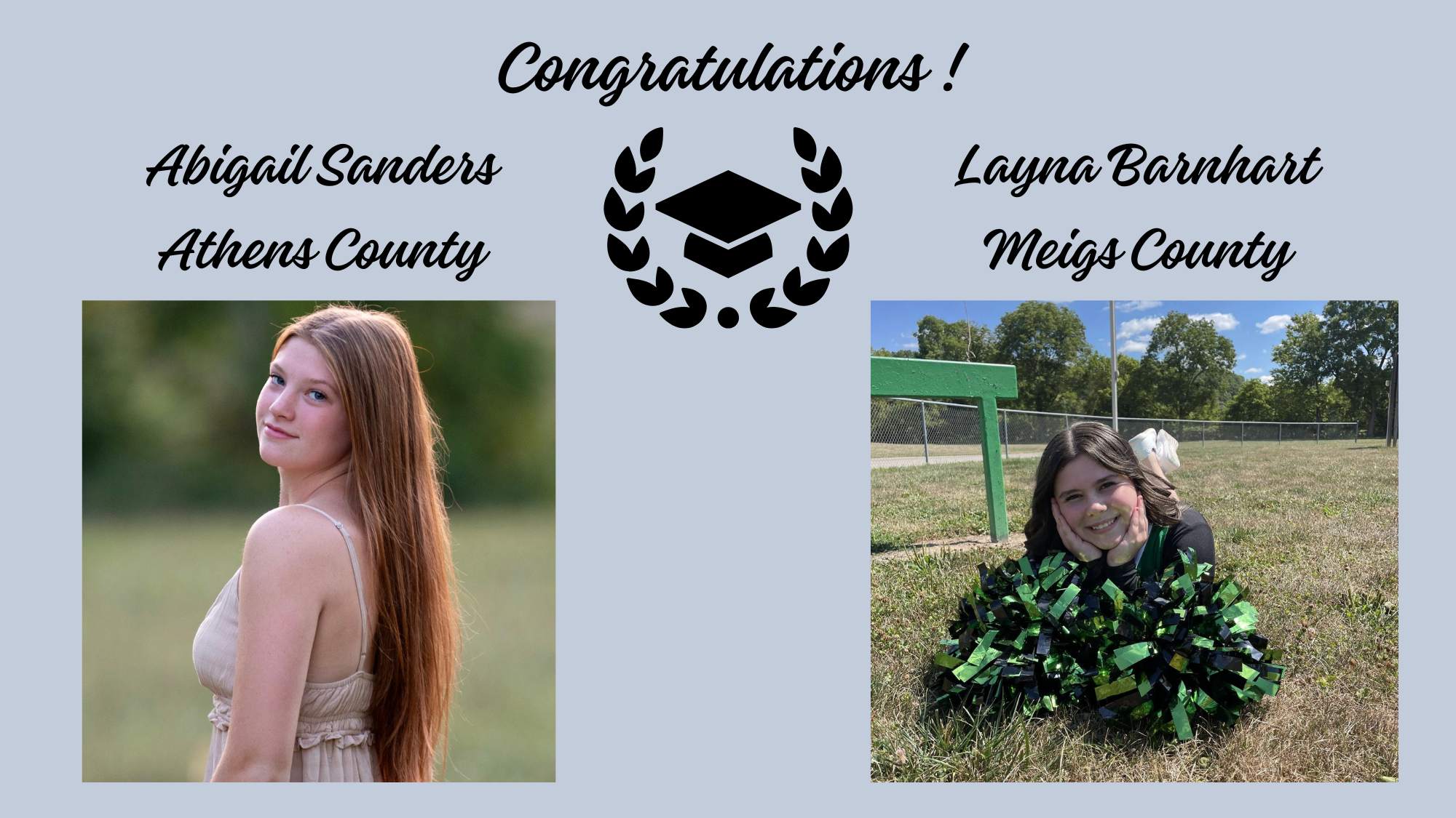 Congratulations to the Athens-Meigs Farm Bureau Scholarship recipients, Abigail Sanders from Athens County, and Layna Barnhart from Meigs County.