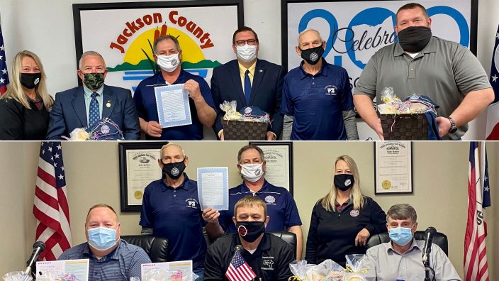 Jackson-Vinton County Farm Bureau presented each commissioner a basket filled with locally grown and produced items as well as information regarding National Ag Week.