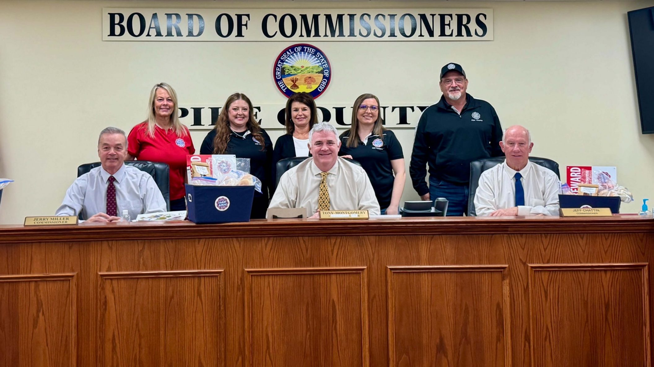 Scioto County Farm Bureau presented each commissioner a basket filled with locally grown and produced items as well as information regarding National Ag Week.